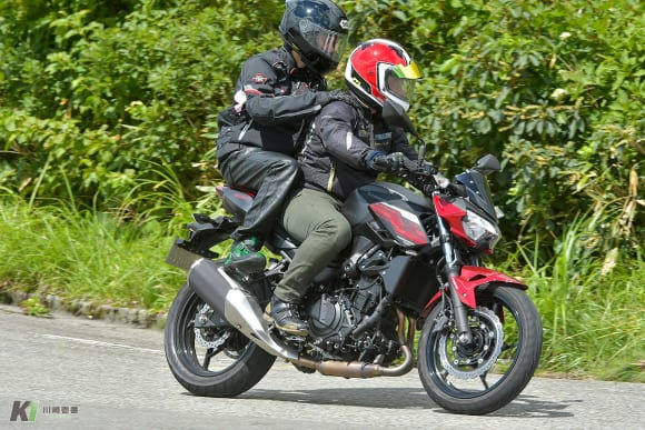 高速道路を走り東北方面へ向かう。並列2気筒エンジンは軽やかに吹け上がり、車体をグイグイと進めていく。ボア・ストローク比など基本的な部分は2018年式のZ250と変わらないものの、大容量のエアクリーナーボックスやダウンドラフト構造の吸気経路、大径スロットルバルブの採用などにより全域でパワフルなエンジン特性になった。そのため追い越しなどをするとき、一定速度から加速するときの押し出し感はより力強く感じられる。中回転域から高回転までスムーズに吹け上がっていく印象だ。カワサキの並列2気筒エンジンの歴史はかなり長い。80年代のレーサーレプリカ時代も存在感はあったくらいだ。多気筒・超高回転化による馬力アップよりも実用域でトルクフルな特性のほうが市街地ではストレスなく走れる。それを知っているからこそのチョイスなのだが、時代の流れにあわせて着実に進化させているところがスゴイ。このパワフル感と扱いやすさの両立は一朝一夕でできるものではないと感じた。