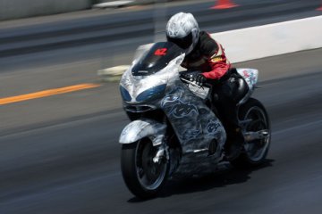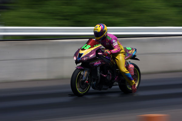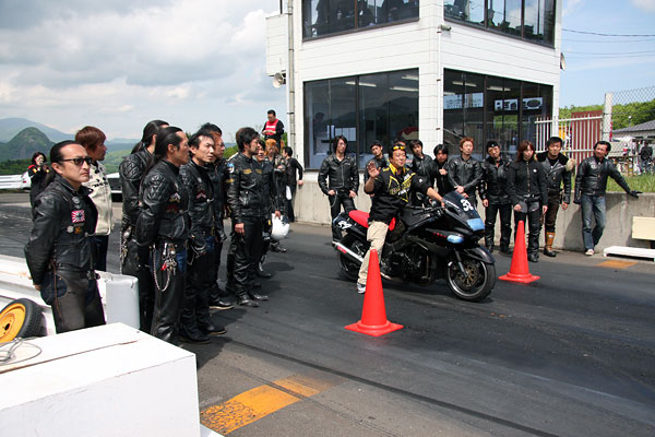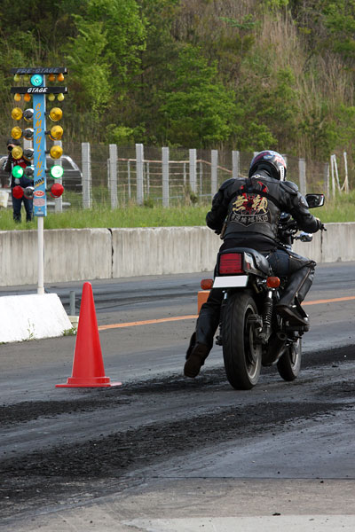 また、このミーティングはドラッグレースイベント・JD-STER走行会との共催であったため、コースサイドで気軽に迫力あるドラッグレースを観戦できたのも大きな特徴。焼けたタイヤとレース用ガソリン独特のニオイが辺りに立ちこみ、0-400mを7秒台で駆け抜けるモンスターマシンの走りを目のあたりにすると、参加者たちは興奮を隠しきれないようすであった。さらに希望者は実際にドラッグレースへのエントリーも可能で、JD-STERのスタッフから初心者講習を受けてコツを教わると、勢いよくバーンナウトし、コースに飛び出していくのであった。