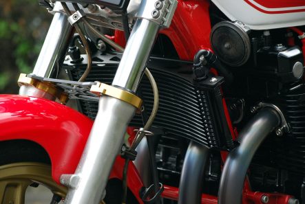 アクティブとのコラボレーションにより開発されたこのオイルクーラーキットは、2016年にゼファー750用がリリースされ、コアやオイルラインだけでなくフィッティングまで黒一色に統一された、シックな外観が特徴だ。オイルラインの取出しは上回しとなり、オイル切れを起こしにくい設計となっているほか、コアサイズはゼファー750用と同様に11インチ・16段となっている。