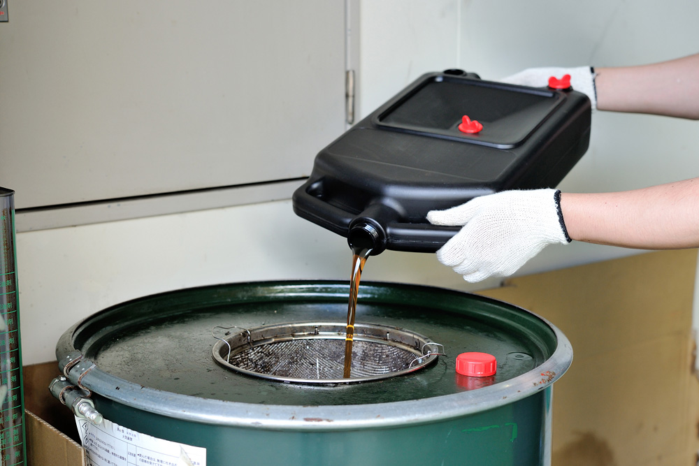廃油の受け口には付属する落下防止ネットを取り付けることができ、タンク内へのドレンボルト落下を防止。オイルドレンパン上部にはキャップ置き場もあるので、作業中にキャップを紛失する心配も少ないだろう。