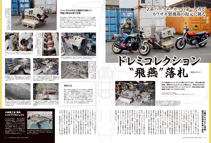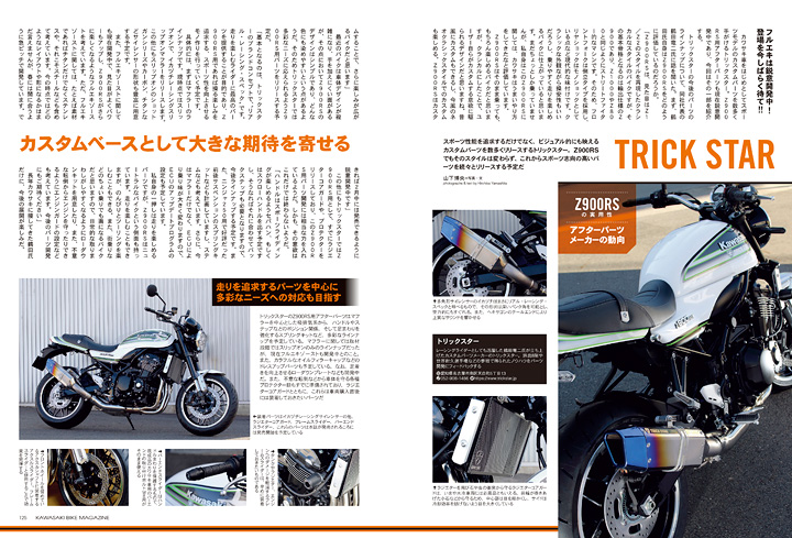 カワサキ車は極限状態ではどのような症状を発生するのか。今号の巻頭特集では、その極限状態を経験した当事者たちのエピソードを紹介する。登場するのは乗り手とメカニックで、乗り味とメカニズムの観点から、カワサキ車の極限状態を解説する。第二特集では、発売前から注目を浴びているZ900RSにクローズアップし、ツーリングで使った時の評価と、カスタムパーツの現状と今後に迫った。今号もカワサキネタが盛り沢山となっている。