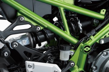 シャシーにはトレリスタイプのフレームに、インナーチューブ径φ41mmの倒立フロントフォーク、新設計のアルミ製スイングアーム&ホリゾンタルバックリンクサスペンションを組み合わせている。また、ブレーキはフロントにφ300mmダブルディスク&ニッシン製対向4ポットキャリパー、リヤにφ250mmシングルディスク&片押し1ポットキャリパーを採用。車両重量は210kgに抑えられており、Z1000よりも10kg軽量に仕上げられている。