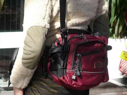 車両に乗る際に、足を振り上げても動きを妨げることもなく、バッグ本体もとても軽量なので疲れ知らず。
