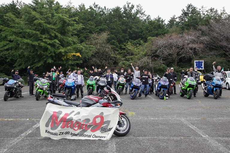 レーサーレプリカではなくスーパースポーツとして、鮮烈なデビューをしたZX-9R。その魅力にひきつけられたオーナーが集ったのがマジック9である。設立から歴史を刻んで25年周年という節目に、静岡県にあるドライブインもちやでミーティングを開催。天気を乗り越えて、たくさんの笑顔が集まった。