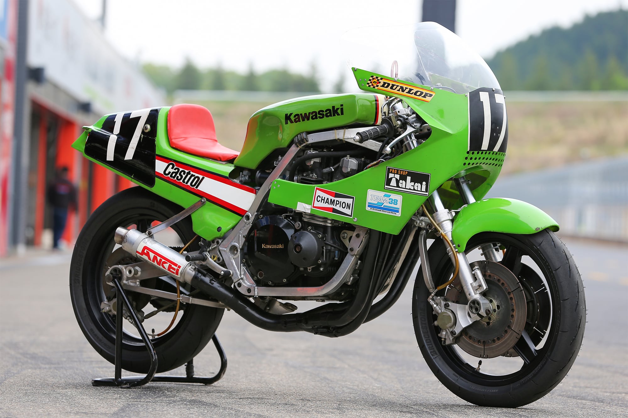 83年当時のファクトリー仕様KR1000を走行できる状態までレストアしたマシンを会場で見かけた。左に掲載した車両がそのKR1000だ。83年世界耐久選手権にパフォーマンス・カワサキから同型のマシンが出場して活躍していた。当時のファンにはあこがれのマシンだ。