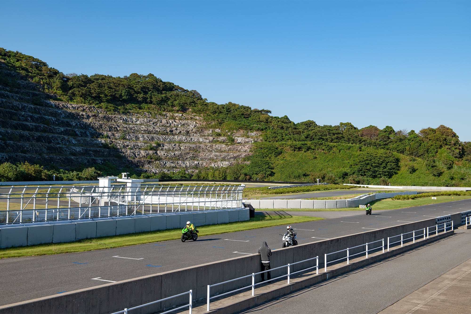 会場は、愛知県のSPA西浦モーターパーク。全長は1.6㎞と、決して長くはないものの、複合コーナーや低速コーナー、アップダウンなど変化に富んだレイアウトとなっている。ニンジャZX-25Rオーナーに向けたトリックスターのレッスンは今回が2度目で、総勢14名が参加。レッスンを担当するのは、トリックスターに所属しAP250チャンピオンの実績を持つ山本剛大氏に加え、全日本ロードレース選手権で活躍した佐藤大紀氏、そしてカワサキ契約ライダーの岩戸亮介選手の3名で、それぞれが4名ずつの参加者を担当した。またヒザ擦りレッスンではトリックスター代表の鶴田竜二氏も講師として登場した。