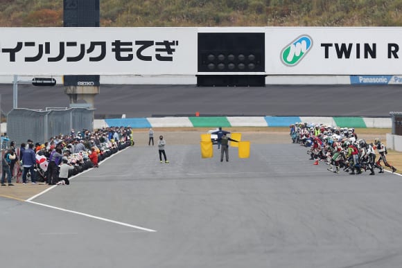 “モータースポーツを仲間や家族と気軽に楽しむ新たなイベント”として、今年の春に初開催されたMotoフェスティバルの第2回大会が行なわれた。参加型の3時間耐久レースは、サーキット走行の未経験者でも限定ライセンスを取得することで参加できるので、年齢やレース経験もバラエティ豊富なライダーが参戦していた。さながら秋のミニバイクによる運動会だった。多数の参加台数があり、スターティンググリッドはクジ引きで決まるユニークなレース。スタートはル・マン式で、3グループに分かれてスタートしていった。