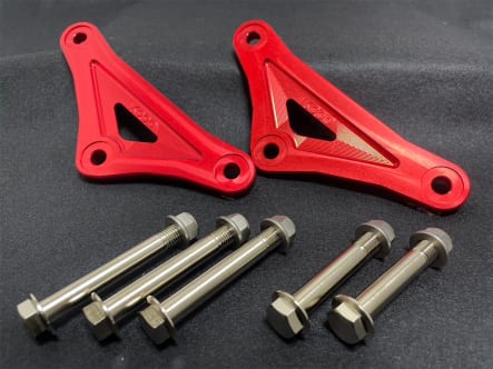 リンクプレートはリヤショックを支える重要部品であり、その強度や精度がサスペンション全体のパフォーマンスにも影響する。そこでKOODではリヤショックを適正位置に収め、サスペンションとしての性能をフルに発揮できるよう高剛性のリンクプレートとクロモリボルト/ナットセットを開発したとのこと。