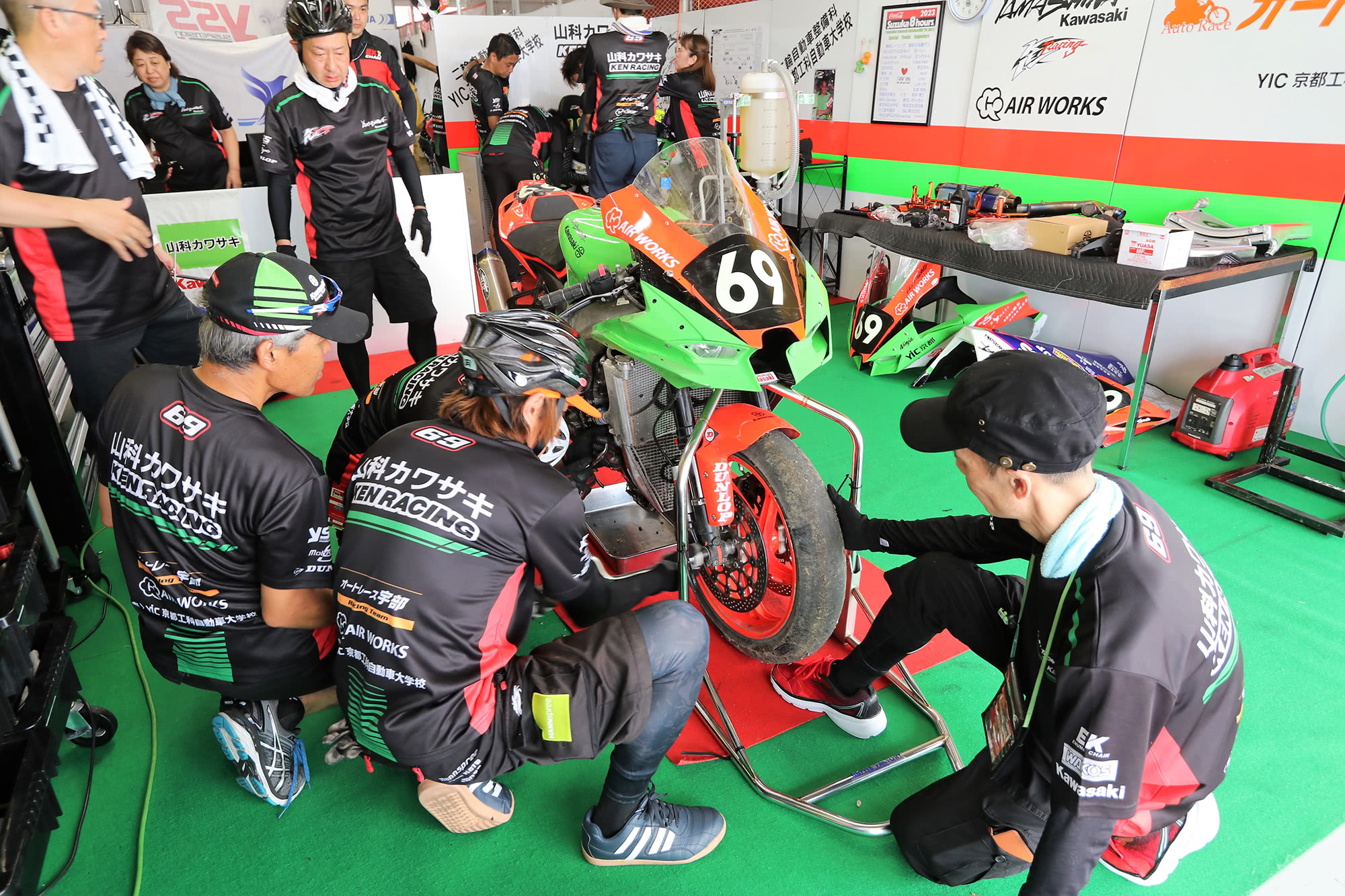 例年以上に猛暑のニュースが報じられる今年の夏、“コカ・コーラ”鈴鹿8時間耐久ロードレース 第44回大会(以下、鈴鹿8耐)が開催された。昨年はコロナ禍での開催のため、ピットウォークの制限など観戦方法に規制が敷かれていたが、今年は、ほぼ規制がなく開催された。その今年の鈴鹿8耐にカワサキ系チームは、カワサキ プラザ レーシング チーム(以下カワサキプラザ)やチーム カワサキ ウェビック トリックスター(以下KWT)をはじめとした6チームが参戦した。
