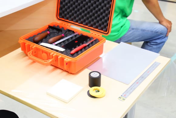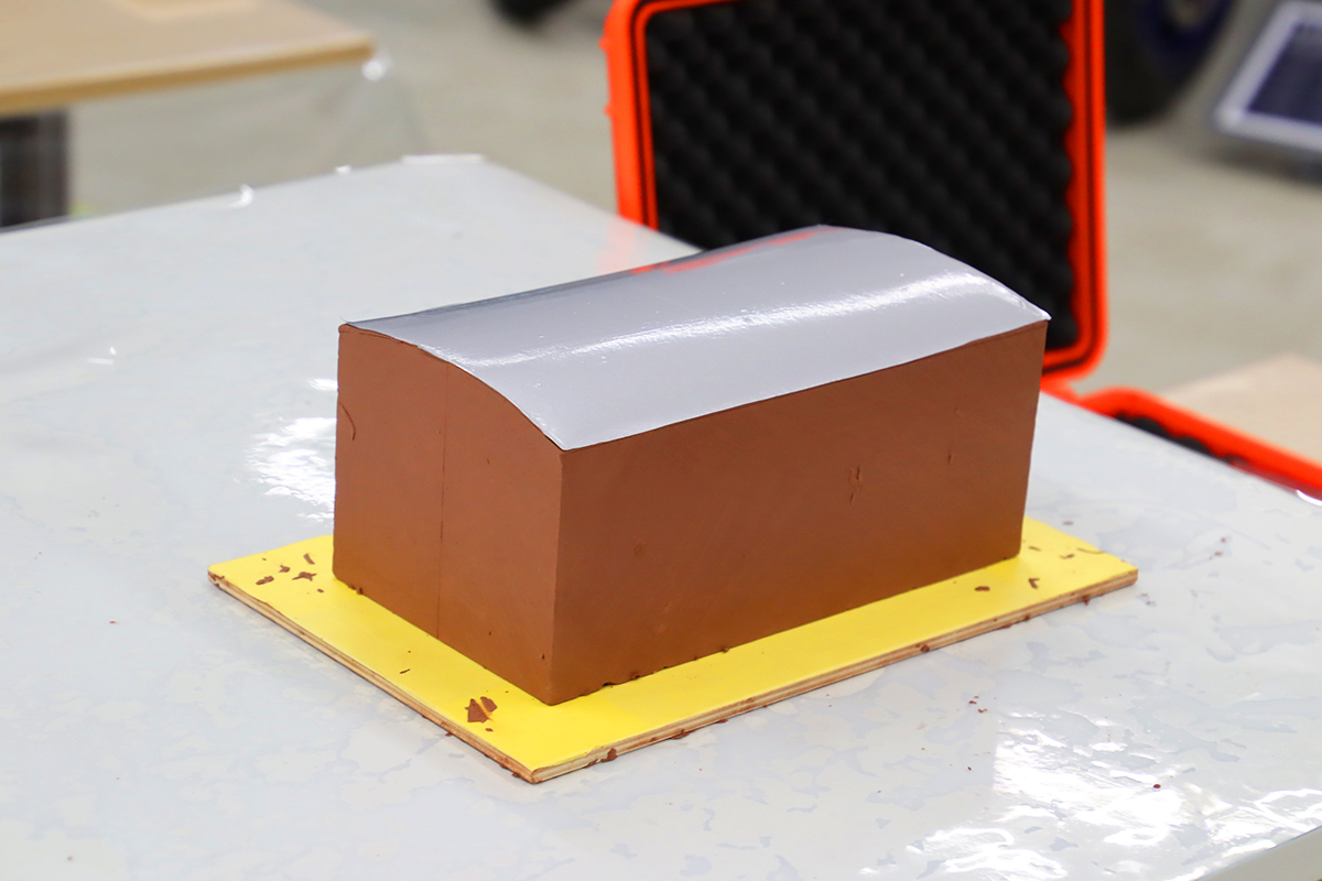クレイモデルは、最後にダイノックを貼って完成となる。