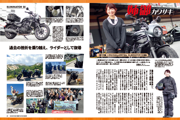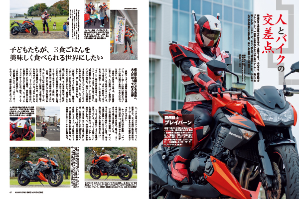 また、バイク情報TV番組『Like a Wind』で活躍するかすみんことたはらかすみさんの連載がスタートしたり、KCBM in 新潟のレポート、カワサキを駆るご当地ヒーロー“開運戦士ブレイバーン”を紹介したりと連載企画も充実。今号もカワサキファンならずとも楽しめる一冊になっているぞ!