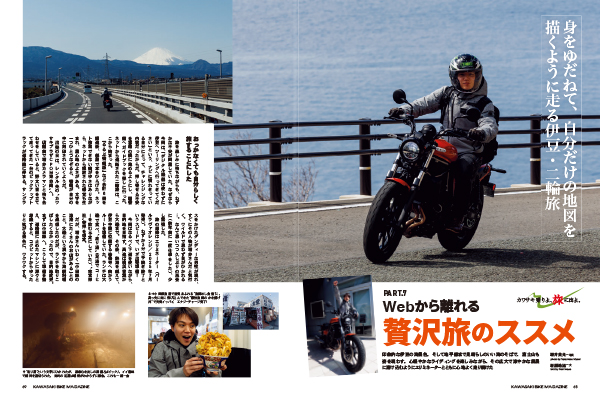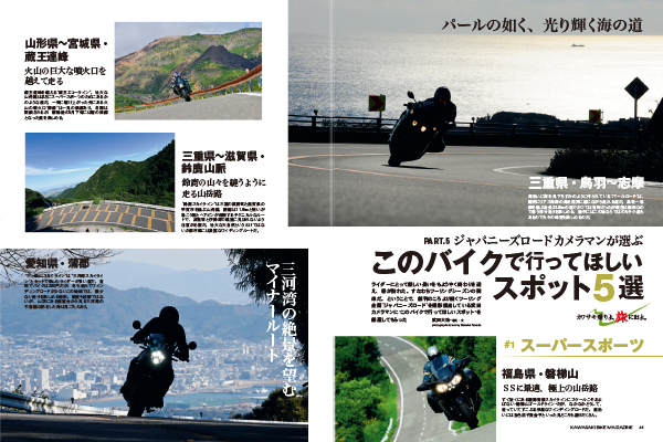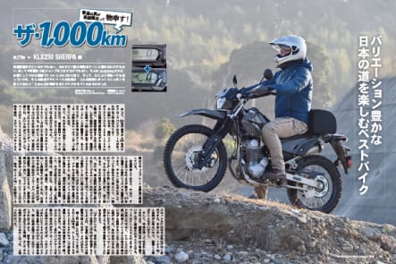連載企画は、カワサキを駆って世界に挑む大森雅俊選手を取り上げた人とバイクの交差点、KLX230 SHERPAの1000㎞インプレッション、また連載が2本始まるなど、今号もカワサキファンならずとも楽しめる充実した一冊になっているぞ!