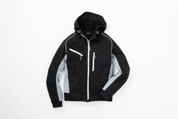 伸縮性のある動きやすいジャージ素材を採用しているのがポイント。フードのバタつきを防ぐベルクロテープが付いていたり、風を取り込むエアインテイクがあったり、グローブをしたままでも使いやすい引き手だったり機能面も充実している。こちらも肩、ヒジ、背中にはブロテクターが標準装備。