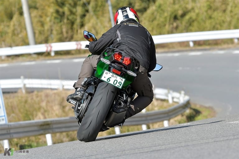 また、KTRCは単にすべり出しを防ぐだけではない。状況にあわせてリニアに介入度合いを変化させて効率よく機能する。車種やモードによってはわずかにタイヤがすべるのを感じるシーンもあるのだが、それは意図的なものでグリップが高い部分を使うことをねらってのこと。そのため挙動は終始安定していて、ハイパワーモデルであっても気負うことなく自然体でライディングできた。